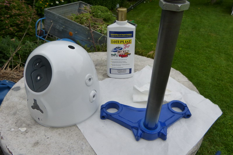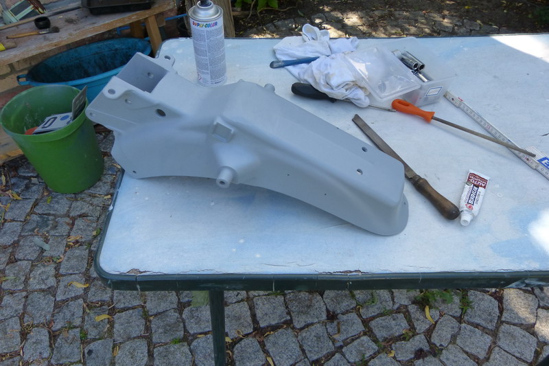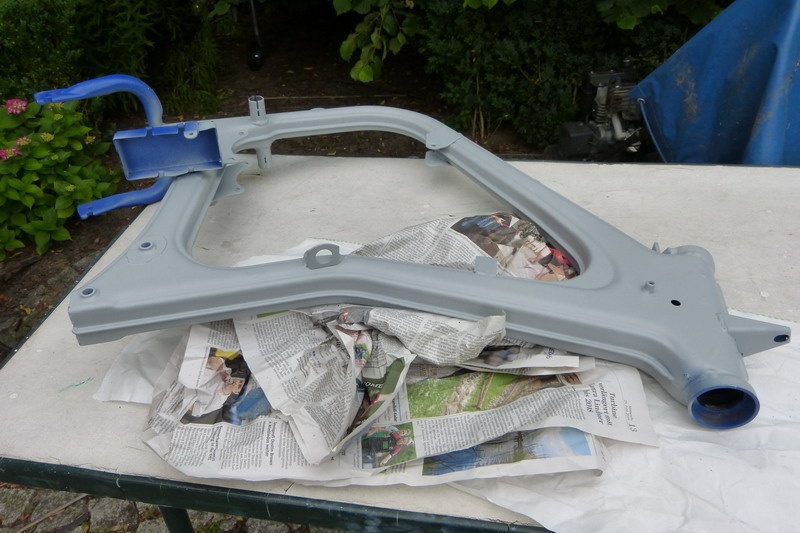 aufgetragen. Unser Projekt wird nun blau / weiß lackiert. |