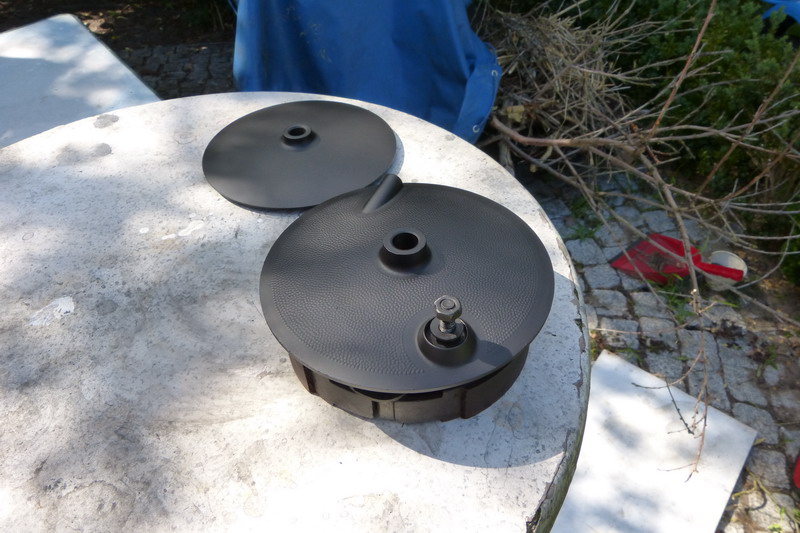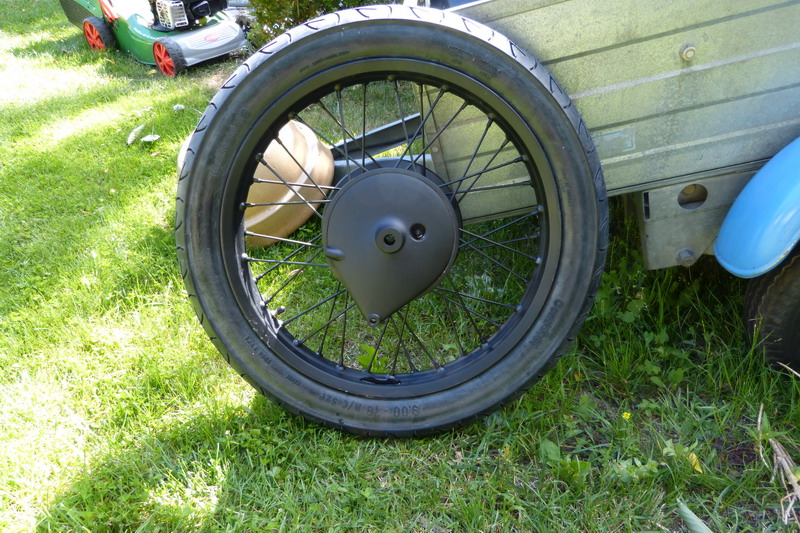 Teile. Die Felgen, Bremstrommeln und Abdeckungen sehen in Mattschwarz ungewohnt modern aus. |