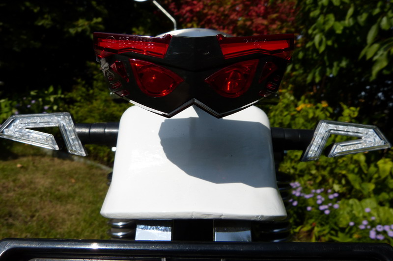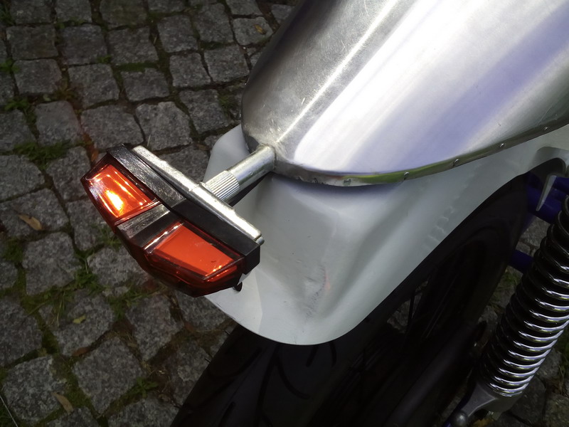 | 5. August 2016 | Das Rüchklicht ist erstaunlich hell. Die Bremsleuchte muss über ein Relais geschaltet werden, da eine gemeinsame Masse die übliche Beschaltung der BSKL unmöglich macht. |