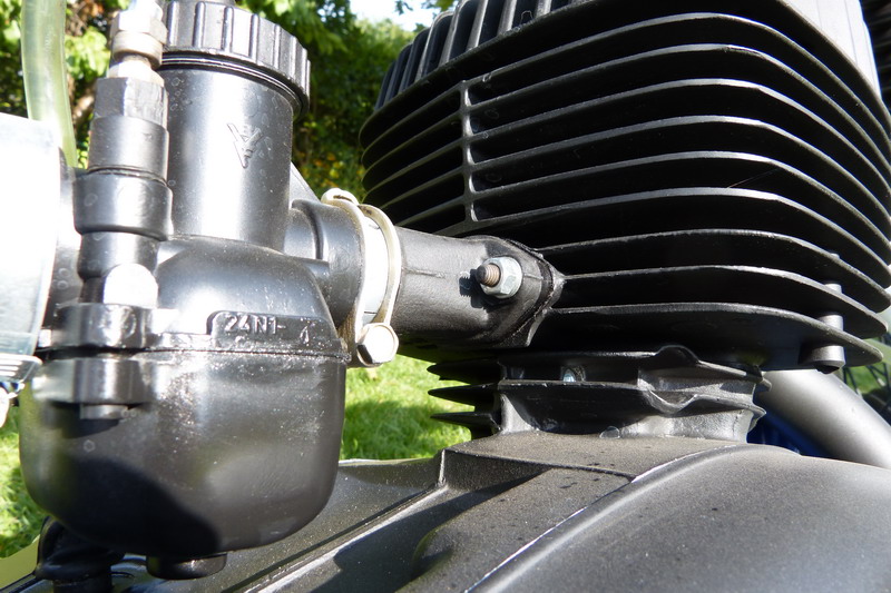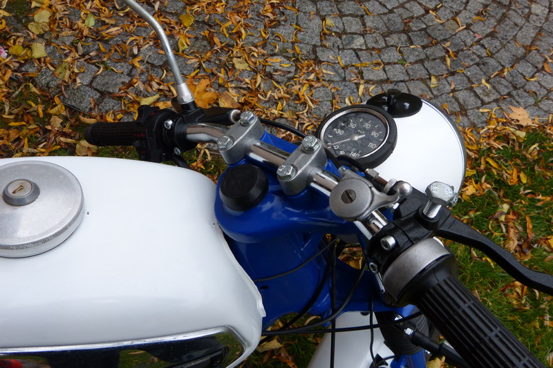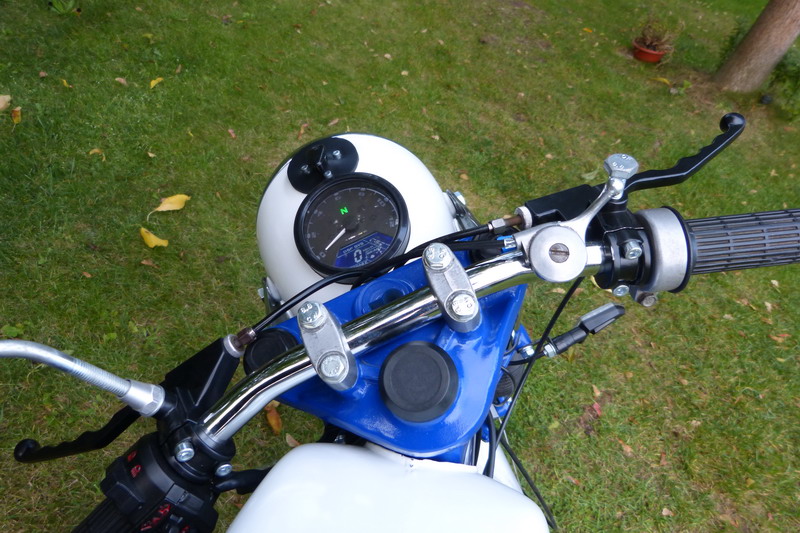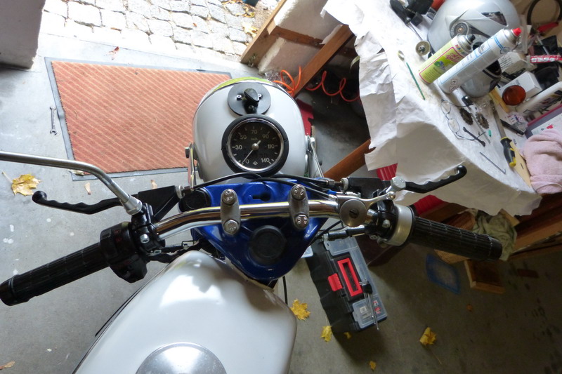 schon interessant aus. Ein Flachlenker muss sein. Der Tank wird provisorisch befestigt. |