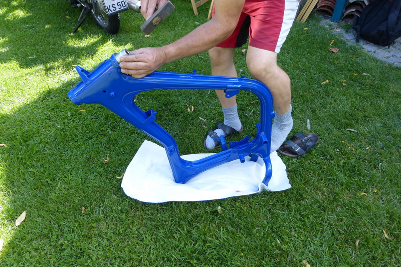 aufgetragen. Unser Projekt wird nun blau / weiß lackiert. |